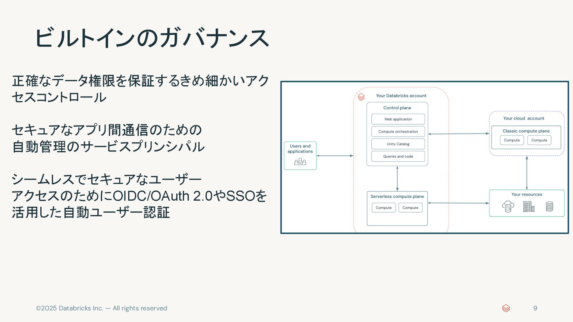 ©2025 Databricks Inc. — All rights reserved 正確なデータ権限を保証するきめ細かいアク セスコントロール セキュアなアプリ間通信のための
