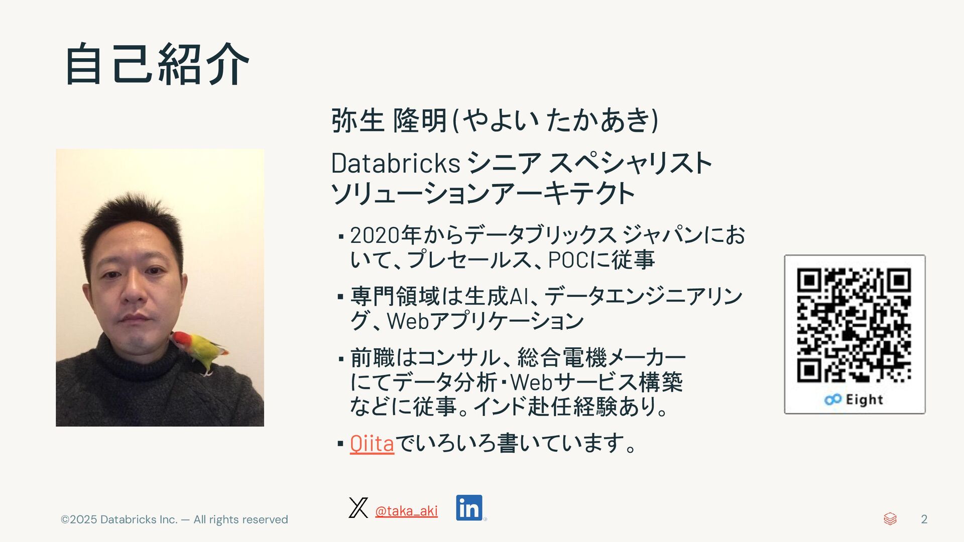 ©2025 Databricks Inc. — All rights reserved 自己紹介 弥生 隆明
