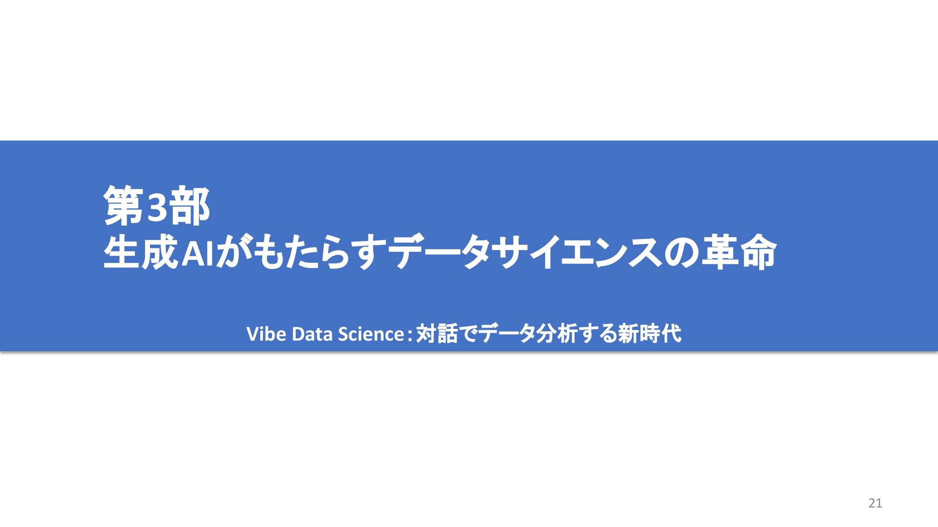 第3部 生成AIがもたらすデータサイエンスの革命 Vibe Data Science:対話でデータ分析する新時代 21