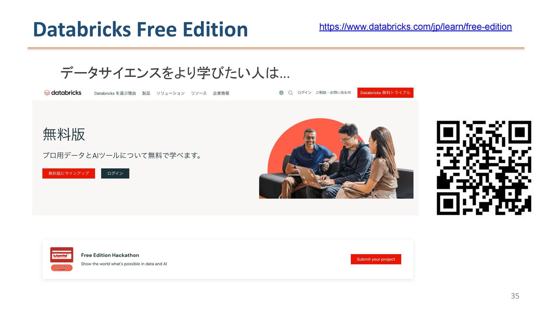 Databricks Free Edition データサイエンスをより学びたい人は... 35 https://www.databricks.com/jp/learn/free-edition