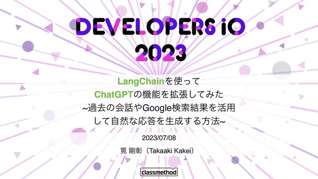 LangChainΛͬͯ ChatGPTͷػೳΛ֦ுͯ͠Έͨ ~աڈͷձGoogleݕࡧ݁ՌΛ׆༻ ͯࣗ͠વͳԠΛੜ͢Δํ๏~ 2023/07/08 ߶জʢTakaaki Kakeiʣ