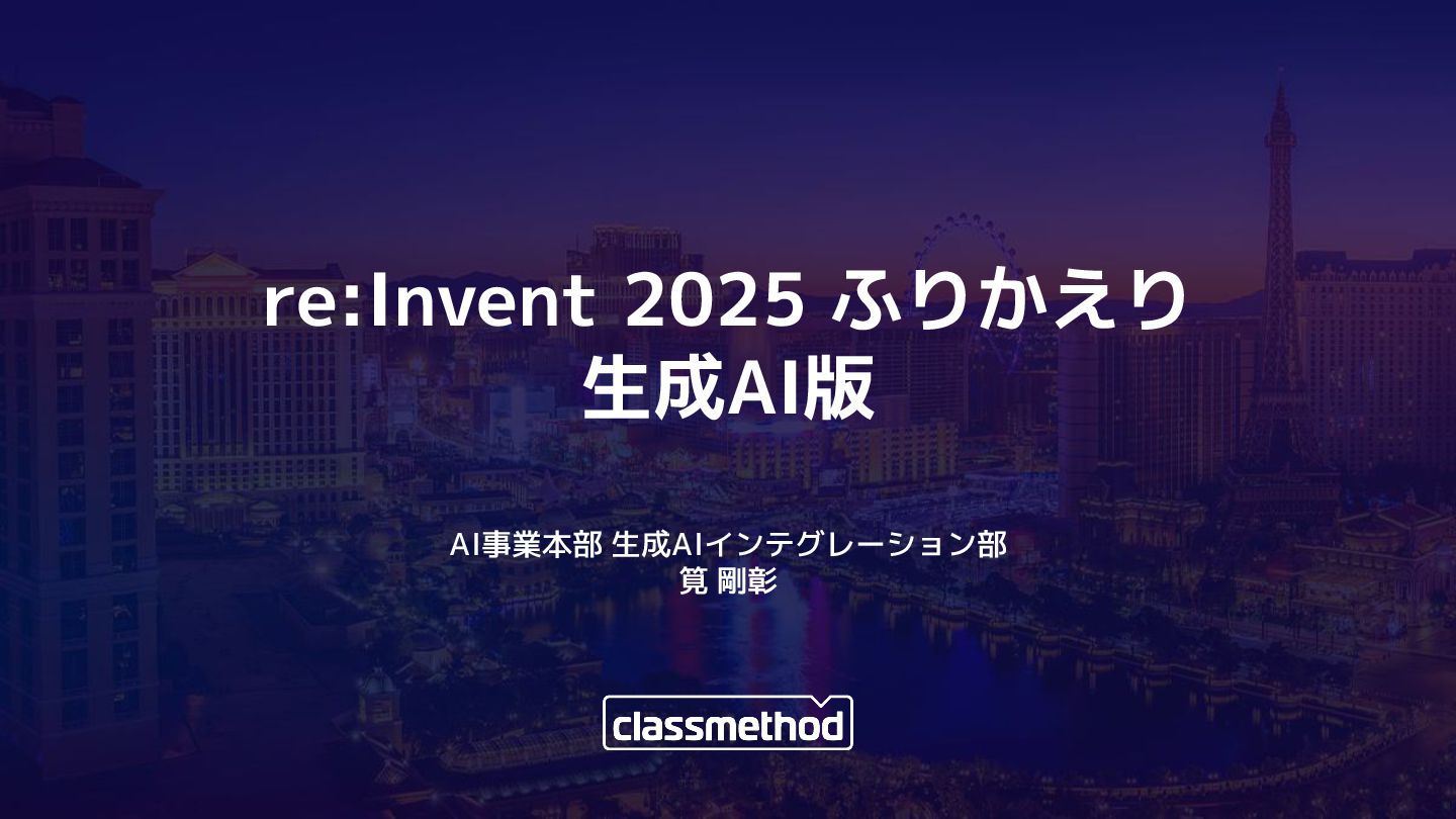 イベント:https://classmethod.jp/seminar/251209-awsreinvent-reflection/