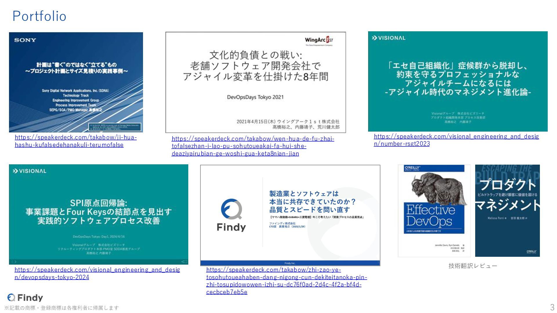 2. ※記載の商標・登録商標は各権利者に帰属します Portfolio 3 https://speakerdeck.com/takabow/ji-hua- hashu-kufalsedehanakuli-terumofalse https://speakerdeck.com/takabow/wen-hua-de-fu-zhai- tofalsezhan-i-lao-pu-sohutoueakai-fa-hui-she- deaziyairubian-ge-woshi-gua-keta8nian-jian https://speakerdeck.com/visional_engineering_and_desig n/number-rsgt2023