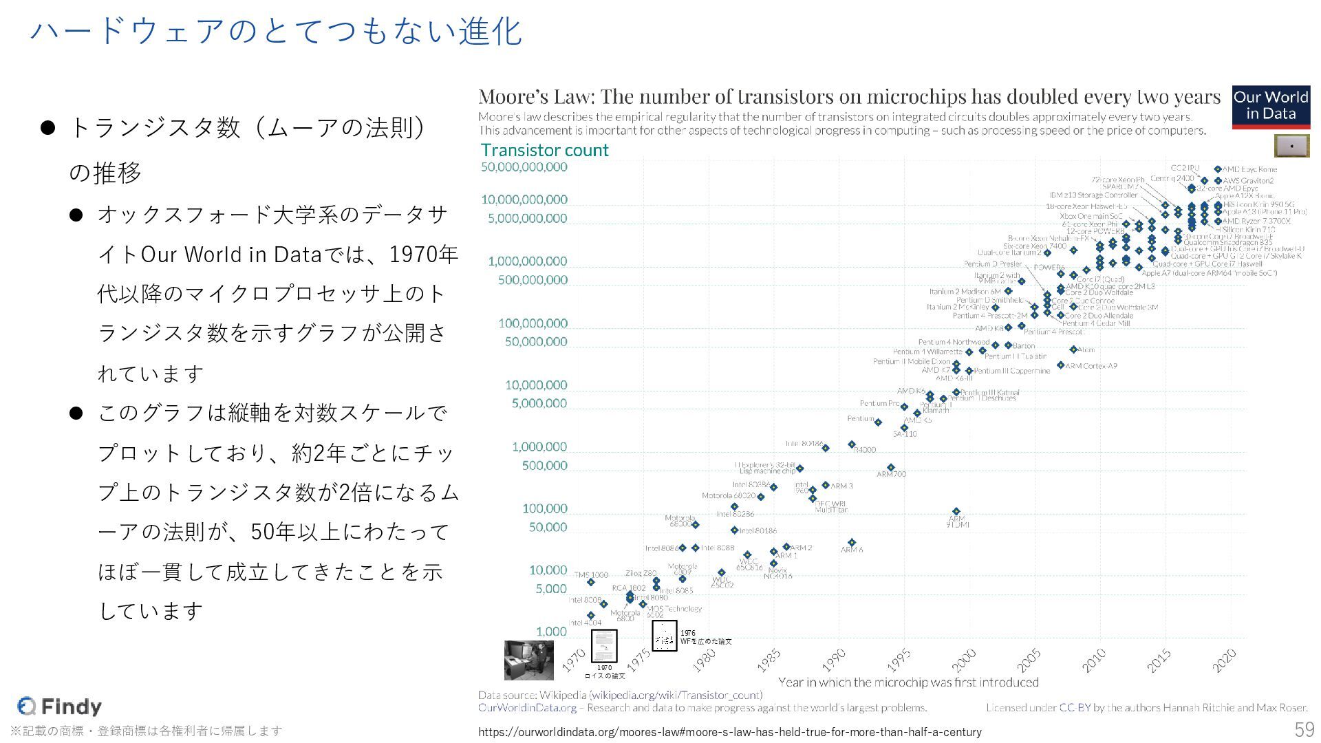 27. ※記載の商標・登録商標は各権利者に帰属します ハードウェアのとてつもない進化 59 ⚫ トランジスタ数(ムーアの法則) の推移 ⚫ オックスフォード大学系のデータサ イトOur World