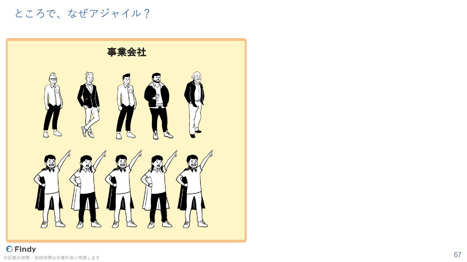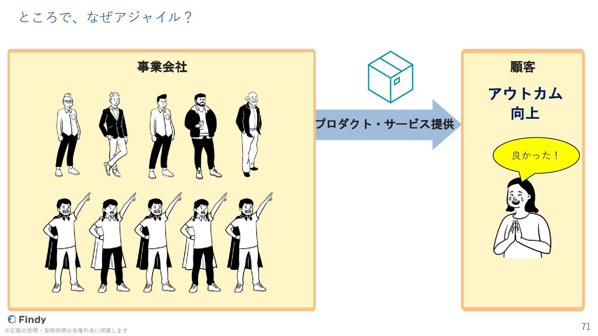 17. ※記載の商標・登録商標は各権利者に帰属します 35年前に痛い目にあっている 40 ⚫ 1970〜1980年代: 多くの企業や政府機関が「ウ ォーターフォールモデル」を公式な開発プロセスと して採用。同時に、Royceの思惑と違う、誤解され た「ウォーターフォール」が広まる ⚫
