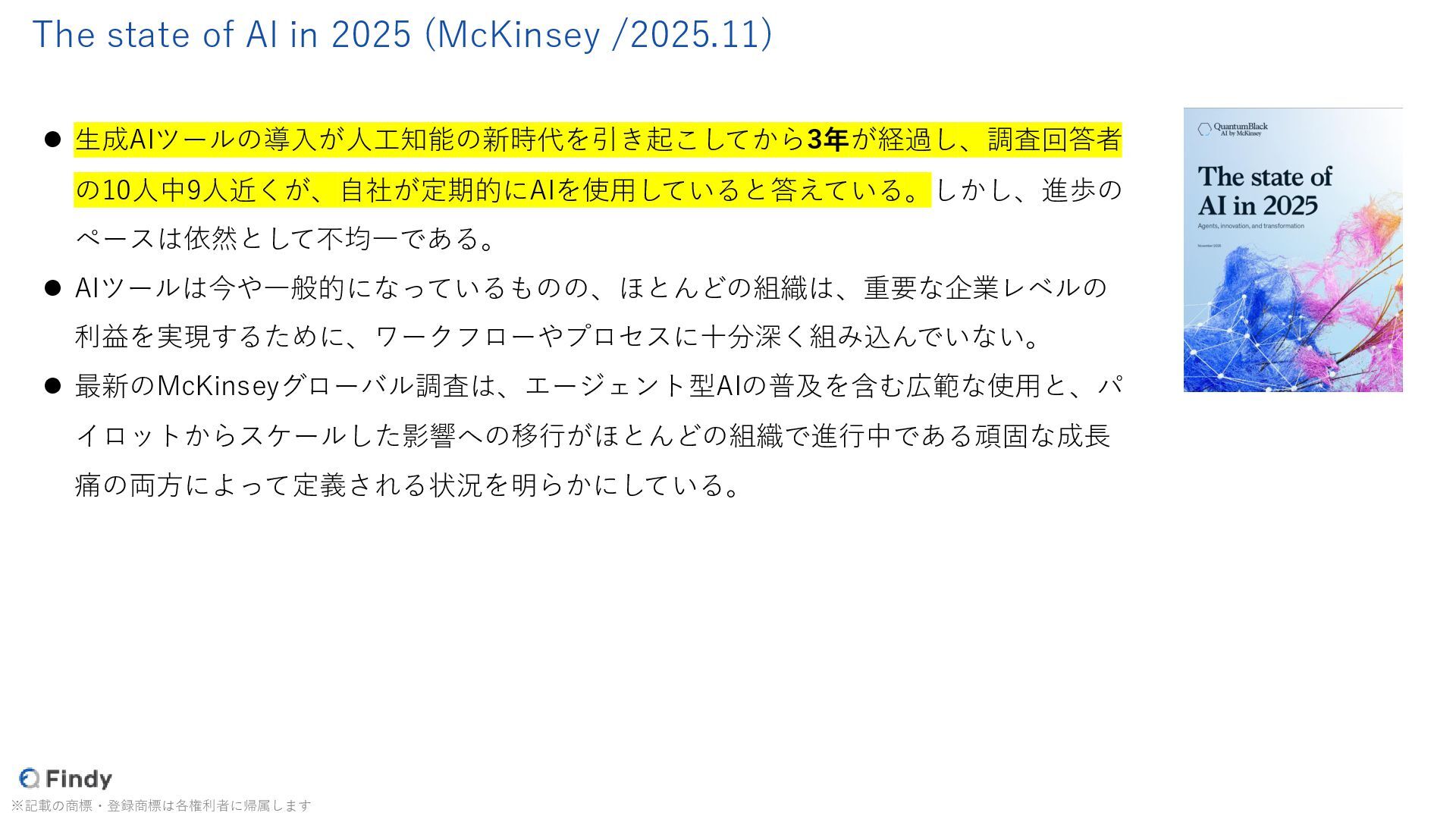 37. ※記載の商標・登録商標は各権利者に帰属します The state of AI in 2025 (McKinsey /2025.11) ⚫