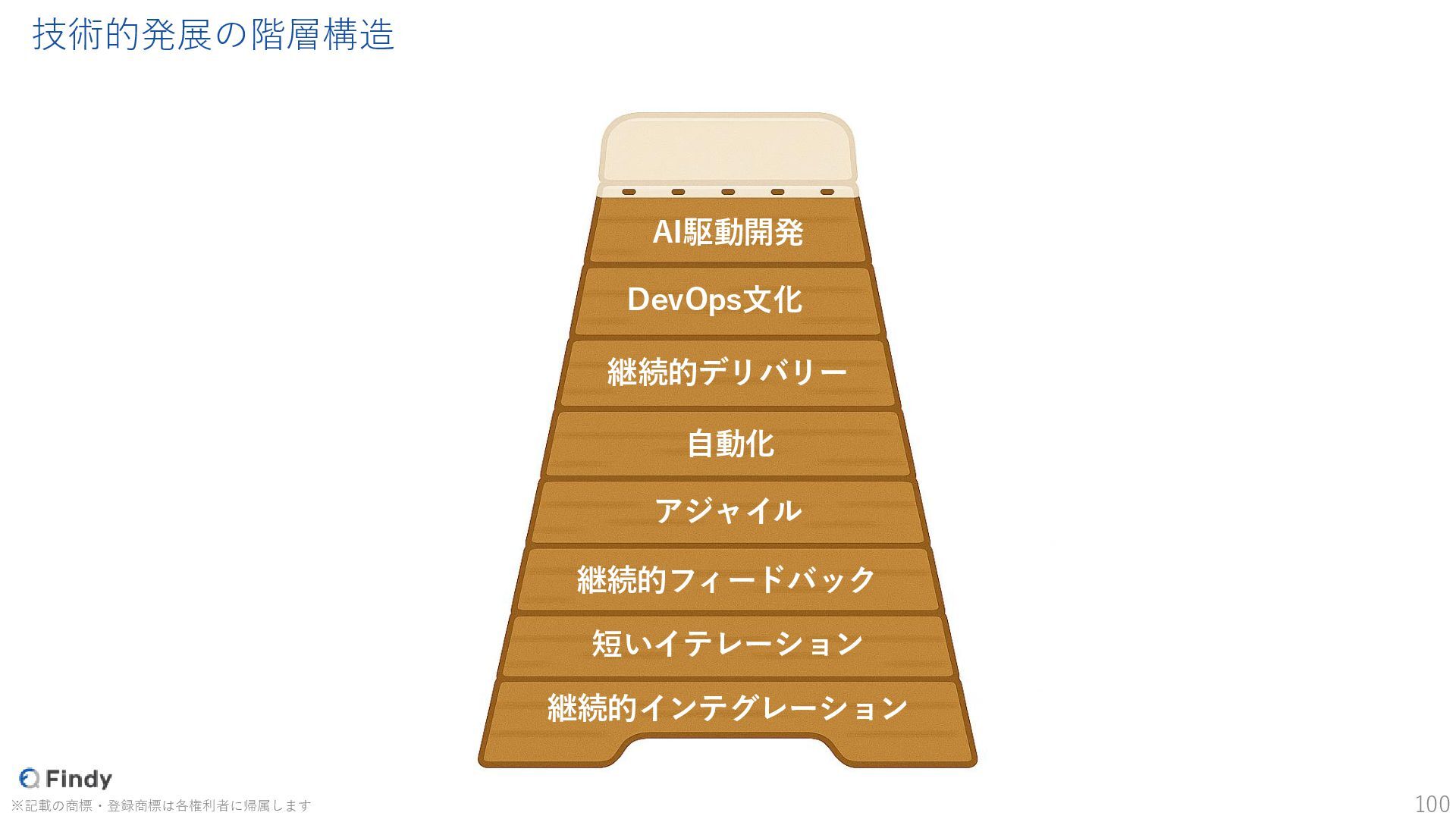 46. ※記載の商標・登録商標は各権利者に帰属します 継続的フィードバック 継続的インテグレーション 自動化 継続的デリバリー AI駆動開発 アジャイル 短いイテレーション 技術的発展の階層構造 ⚫