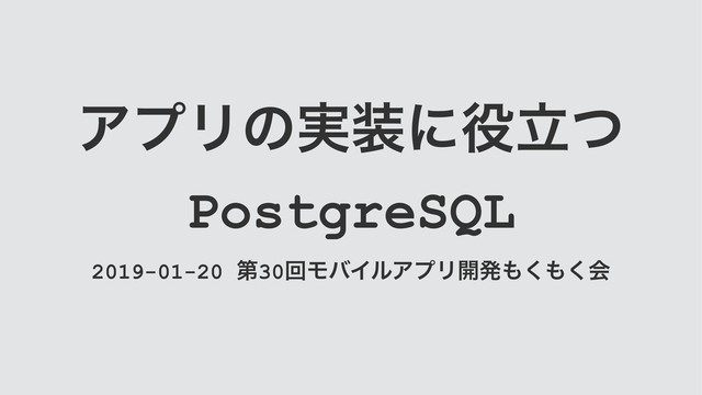 ΞϓϦͷ࣮ʹཱͭ PostgreSQL 2019-01-20 ୈ30ճϞόΠϧΞϓϦ։ൃ͘͘ձ