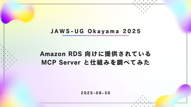 2025年08月30日(土) に開催された JAWS-UG Okayama 2025 の発表内容です。