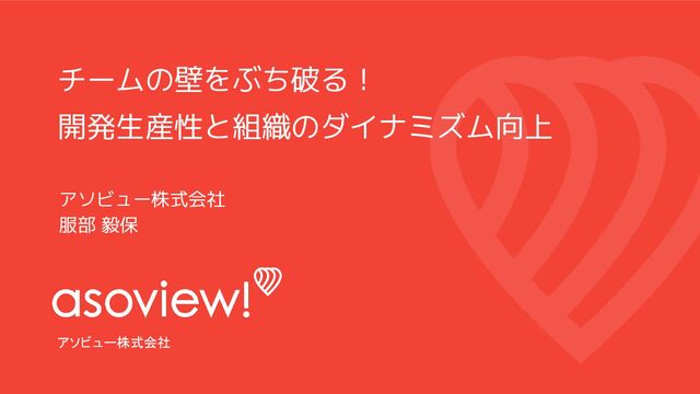 アソビュー株式会社 チームの壁をぶち破る! 開発生産性と組織のダイナミズム向上 アソビュー株式会社 服部 毅保