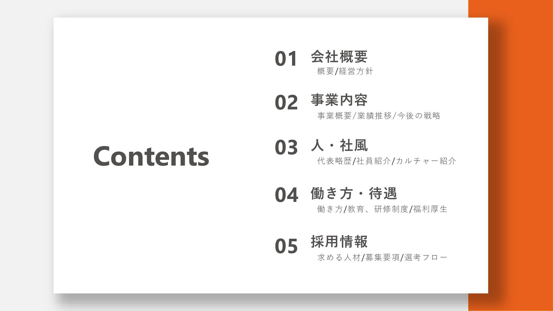 指示を待つのではなく、自ら考え 行動できる能動的な姿勢を持つ人 材を求めています。 チームと一緒に目標を達成し、 未来を作り上げる意欲を持つ 人材を求めています。 成果への責任 目標達成のために数字に責 任を持ち、結果にコミット できる人材を求めています。 Responsibility Leadership Responsibility Leadership Execution Execution