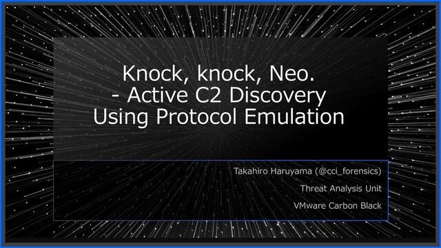 This presentation introduces the method to find an operating Cobalt Strike team server directly on the Internet. This method emulates multiple protocols which Cobalt Strike uses such as HTTP, HTTPS, DNS, and ExternalC2. In addition to finding team servers, this method obtains Beacon and parses the configuration file. In this way, analysts can cover more protocols, not only HTTP and HTTPS, avoid false positives, and obtain more detailed threat information than just IP addresses. The method does not avoid any security feature such as authentication.