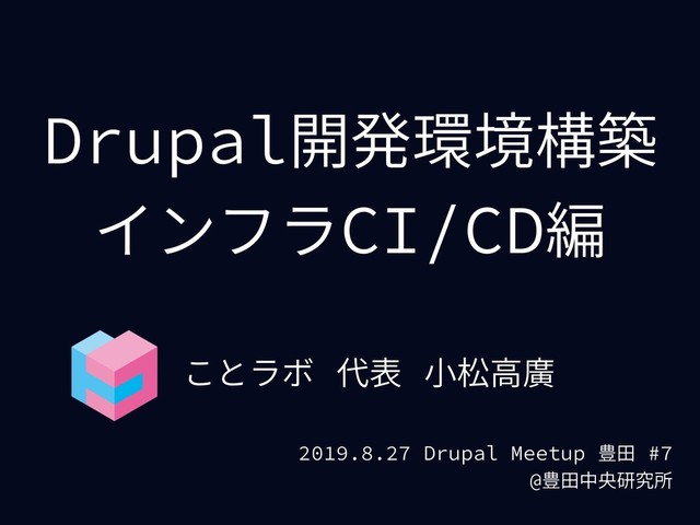 Drupal開発環境構築 インフラCI/CD編 2019.8.27 Drupal Meetup 豊⽥ #7 @豊⽥中央研究所 ことラボ 代表