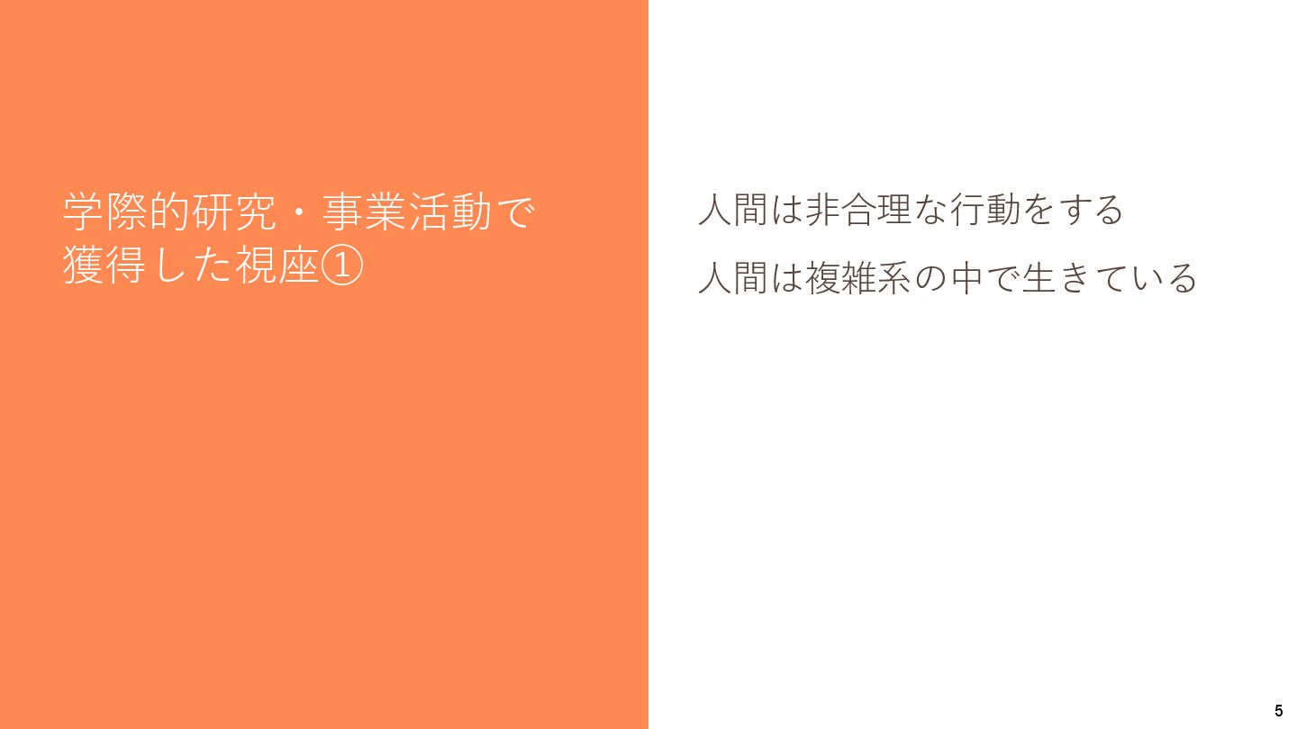 学際的研究・事業活動で 獲得した視座① 人間は非合理な行動をする 人間は複雑系の中で生きている 5