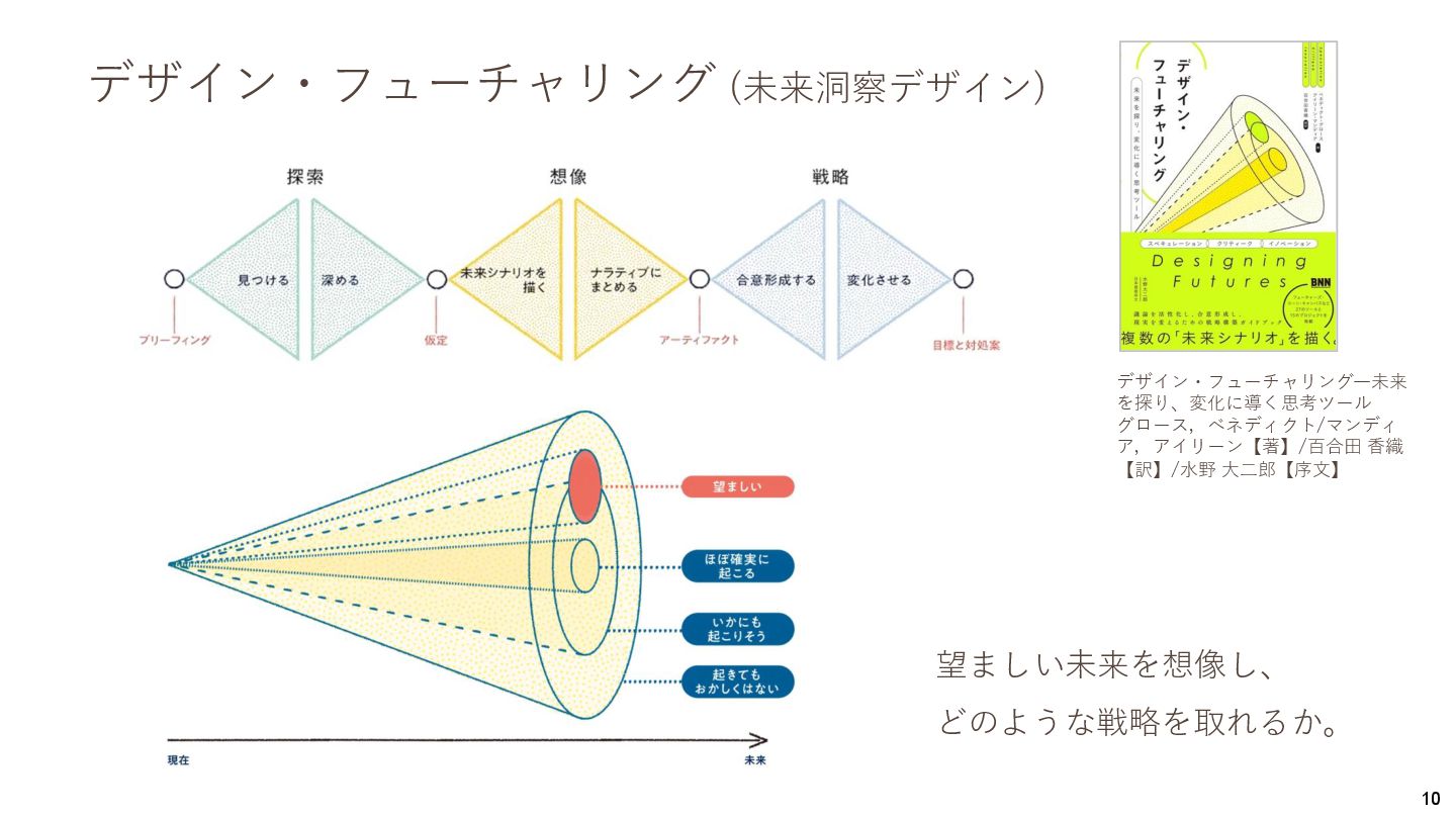 10 デザイン・フューチャリング (未来洞察デザイン) 望ましい未来を想像し、 どのような戦略を取れるか。 デザイン・フューチャリング―未来 を探り、変化に導く思考ツール グロース,ベネディクト/マンディ ア,アイリーン【著】/百合田 香織