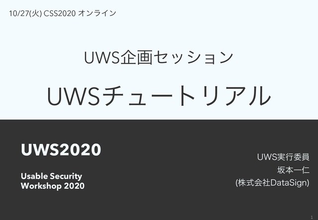 UWS2020 UWSνϡʔτϦΞϧ̍ ϢʔβελσΟΛ͡ΊΑ͏ʂ 5 UWSチュートリアルについて 10分 ࡔຊ Ұਔʢגࣜձࣾ%BUB4JHOʣ ユーザブル・セキュリティ⼊⾨ ۚԬ