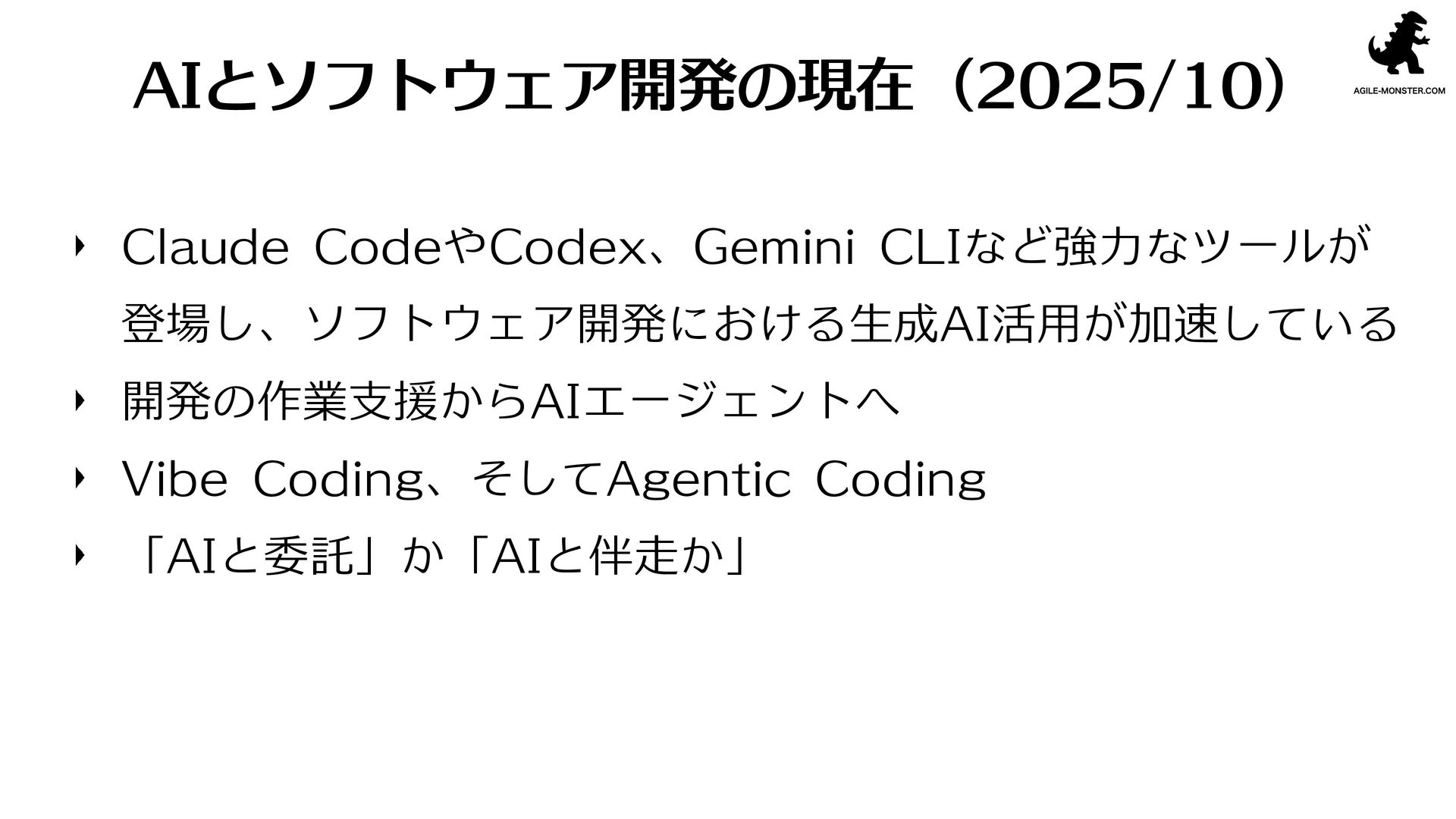 コーディングやドキュメント作成、資料作成といった“作業”は加速度的に効率化が進み、Vibe CodingやAgentic Codingのように、開発の役割や働き方そのものを揺さぶる変化も生まれています。