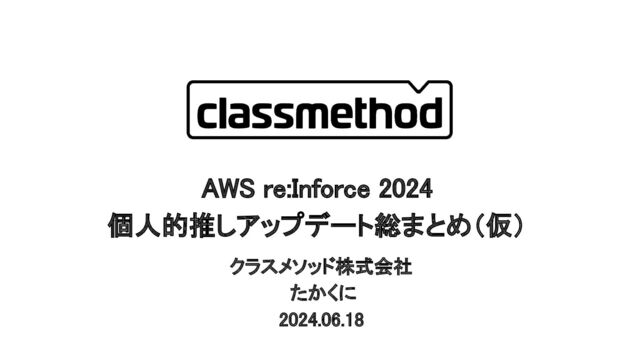 クラスメソッド株式会社 たかくに 2024.06.18 1 AWS re:Inforce 2024