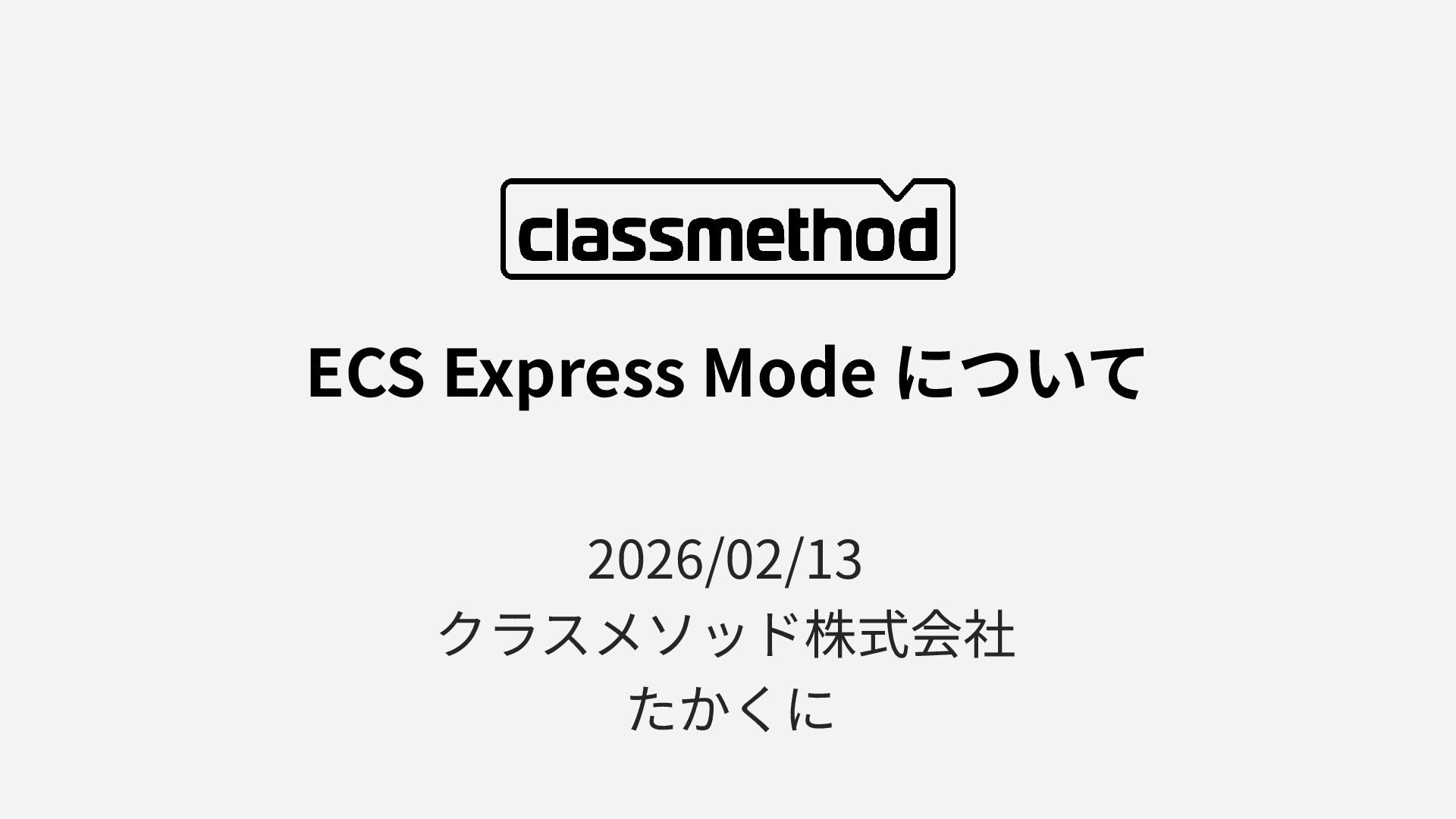 ECS Express Mode について 2026/02/13 クラスメソッド株式会社 たかくに