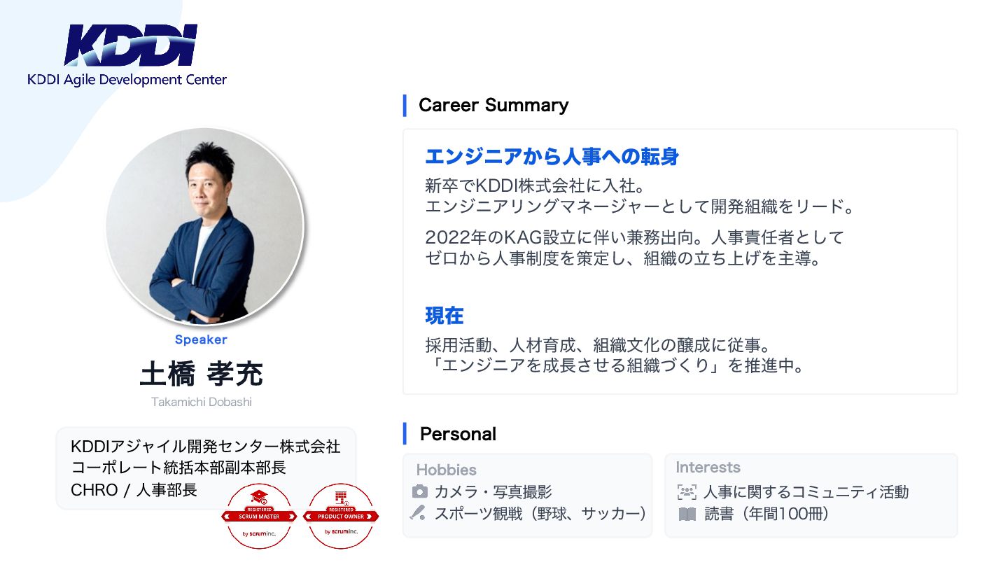 1. 4QFBLFS ౔ڮ ޹ॆ 5BLBNJDIJ%PCBTIJ ,%%*ΞδϟΠϧ։ൃηϯλʔגࣜձࣾ ίʔϙϨʔτ౷ׅຊ෦෭ຊ෦௕ $)30ਓࣄ෦௕ $BSFFS4VNNBSZ 1FSTPOBM )PCCJFT