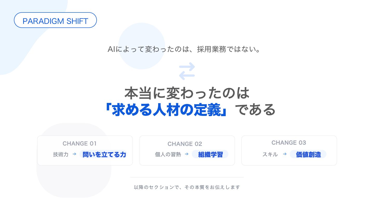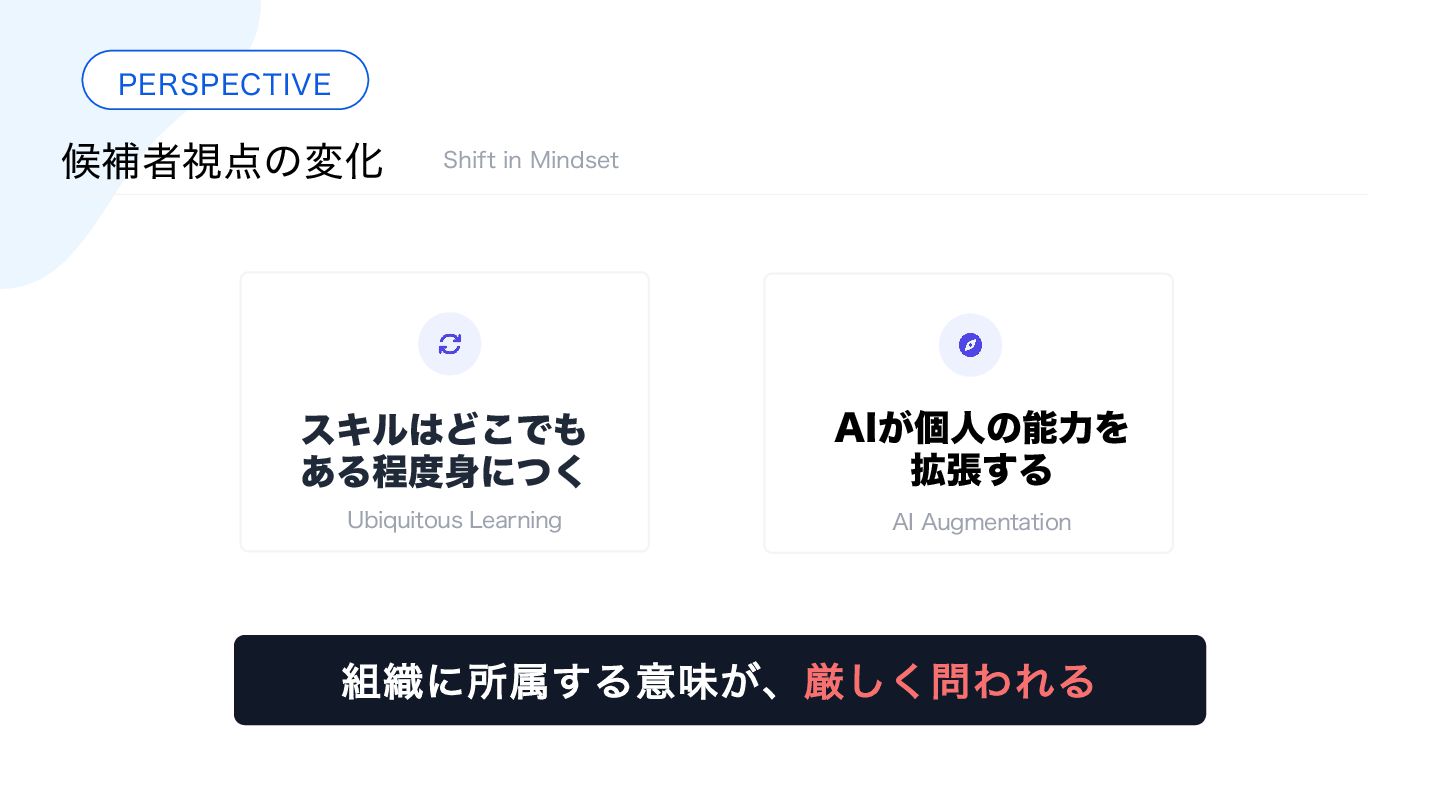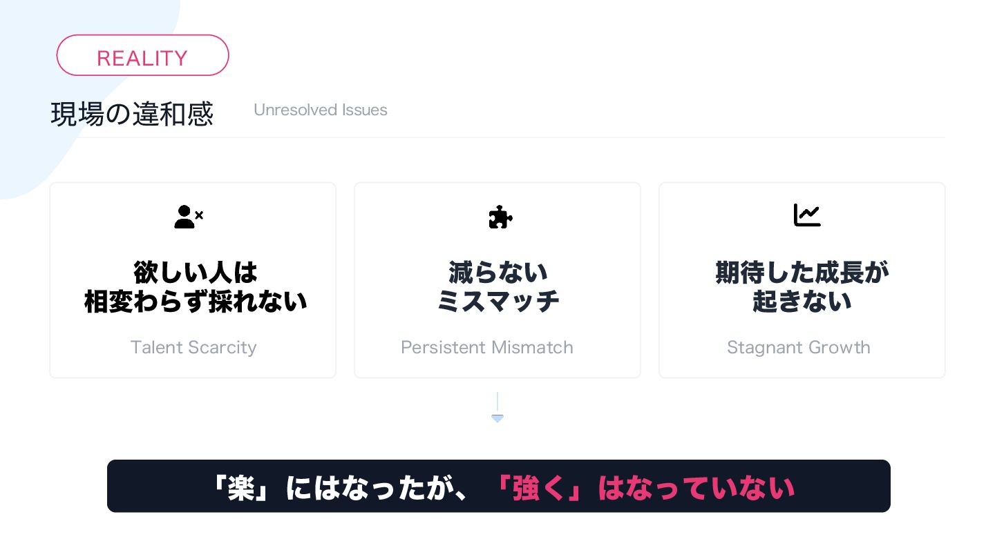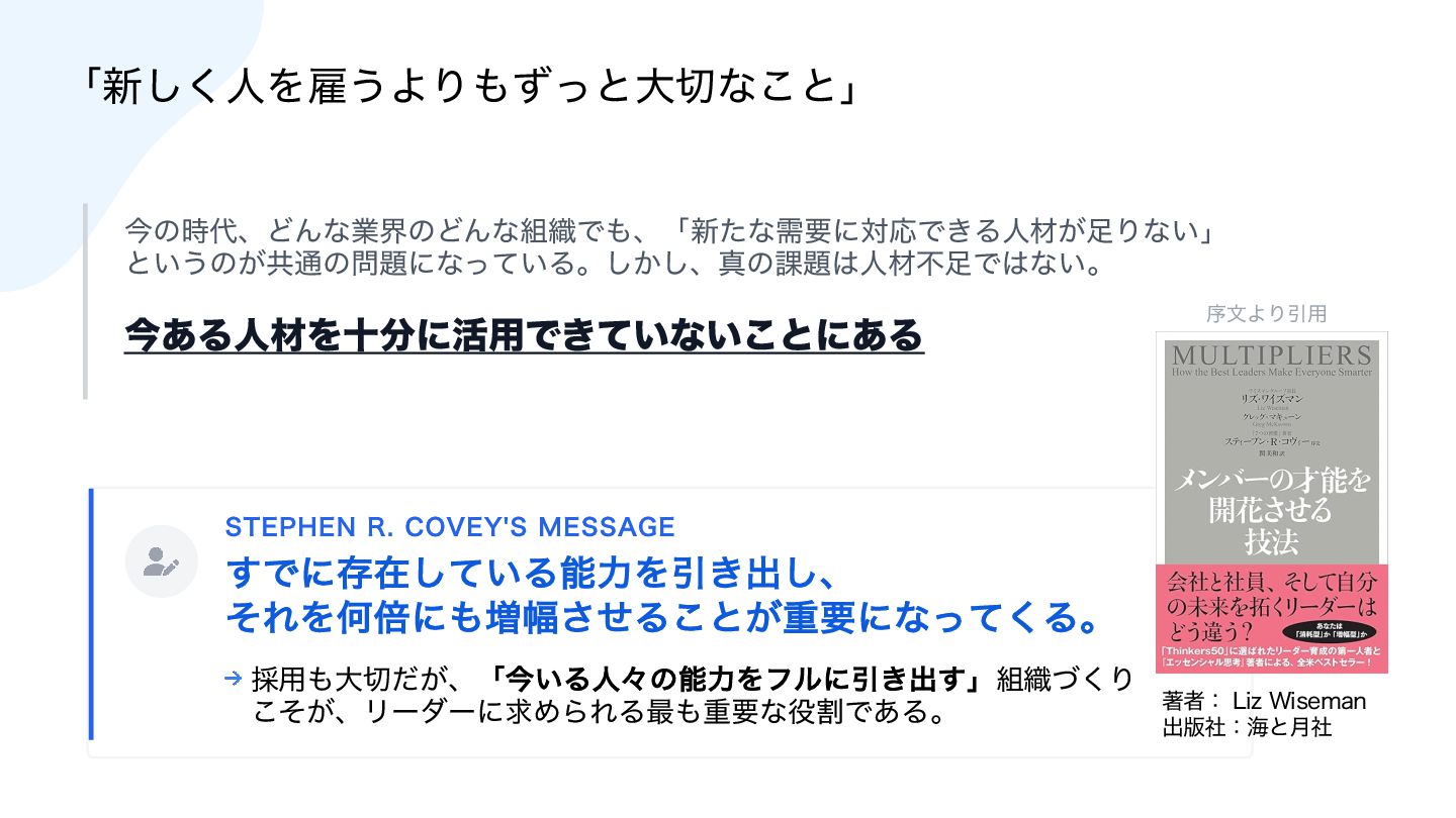 18. ·ͱΊ ΤϯδχΞΛ੒௕ͤ͞Δ૊৫ 10*/5 ਓࡐఆٛͷมԽ "*࣌୅ʹมΘͬͨͷ͸࠾༻ۀ຿ͷख๏Ͱ͸ͳ͍ɻ ຊ౰ʹมΘͬͨͷ͸ʮٻΊΔਓࡐͷఆٛʯͦͷ΋ͷɻ 10*/5 اۀͷ૯߹ྗͱ੒௕ ࠾༻ͷ੒൱ʹاۀͷ૯߹ྗɻͦΕΛܾΊΔͷ͸ ʮਓࡐʯɻͦͷਓࡐͷ੒௕͸ݸਓͷ౒ྗ͚ͩͰ