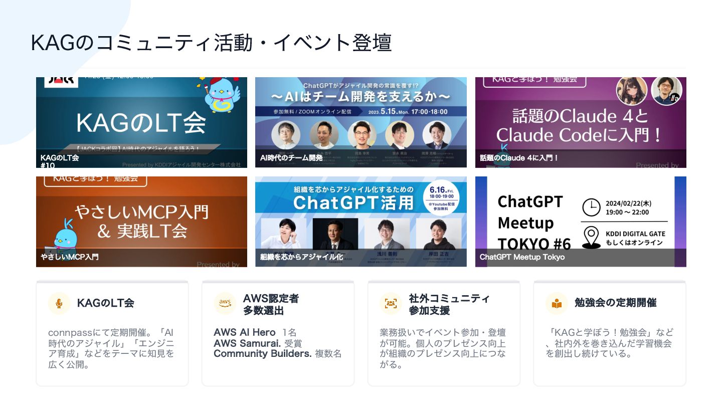11. ,"(ͷίϛϡχςΟ׆ಈɾΠϕϯτొஃ ,"(ͷ-5ձ  "*࣌୅ͷνʔϜ։ൃ ࿩୊ͷ$MBVEFʹೖ໳ʂ ΍͍͞͠.$1ೖ໳ ૊৫Λਊ͔ΒΞδϟΠϧԽ $IBU(15.FFUVQ5PLZP ,"(ͷ-5ձ DPOOQBTTʹͯఆظ։࠵ɻʮ"*