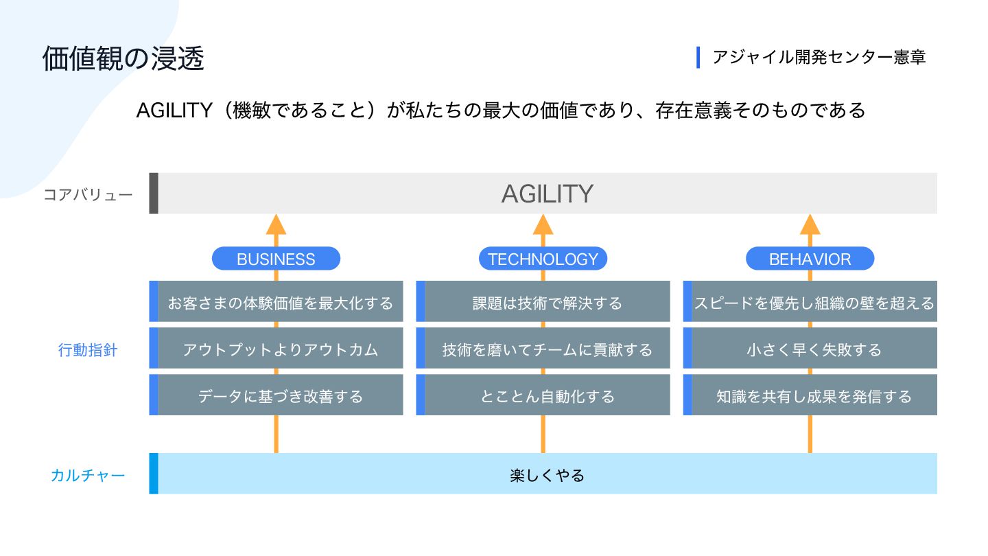஌ࣝΛڞ༗͠੒ՌΛൃ৴͢Δ Ξ΢τϓοτΑΓΞ΢τΧϜ ٕज़Λຏ͍ͯνʔϜʹߩݙ͢Δ খ͘͞ૣࣦ͘ഊ͢Δ ͓٬͞·ͷମݧՁ஋Λ࠷େԽ͢Δ ՝୊͸ٕज़Ͱղܾ͢Δ εϐʔυΛ༏ઌ͠૊৫ͷนΛ௒͑Δ "(*-*5:ʢػහͰ͋Δ͜ͱʣ͕ࢲͨͪͷ࠷େͷՁ஋Ͱ͋Γɺଘࡏҙٛͦͷ΋ͷͰ͋Δ Ձ஋؍ͷਁಁ ΞδϟΠϧ։ൃηϯλʔݑষ