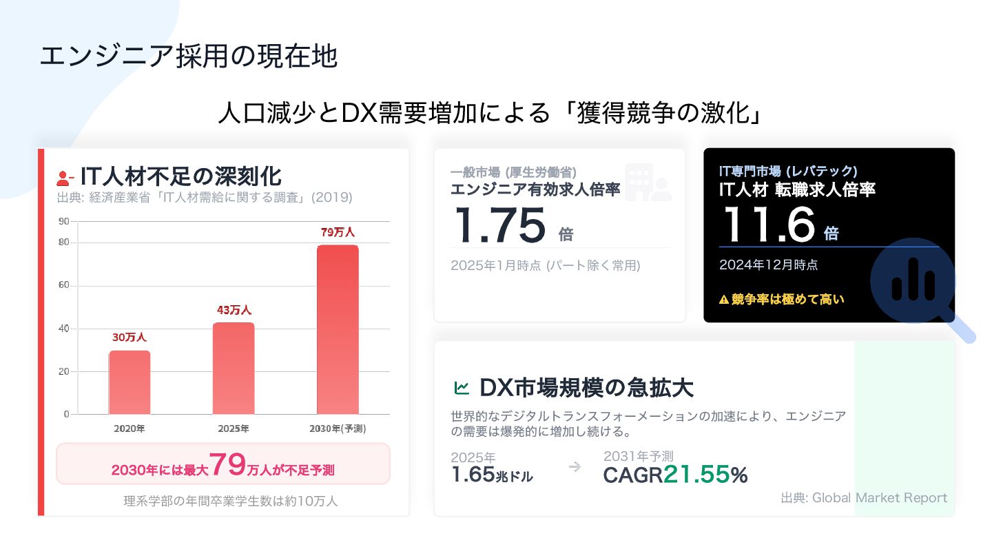 ഒ ೥݄࣌఺ ύʔτআ͘ৗ༻ *5ઐ໳ࢢ৔ ϨόςοΫ *5ਓࡐ స৬ٻਓഒ཰  ഒ ೥݄࣌఺ ڝ૪཰͸ۃΊͯߴ͍ %9ࢢ৔ن໛ͷٸ֦େ ੈքతͳσδλϧτϥϯεϑΥʔϝʔγϣϯͷՃ଎ʹΑΓɺΤϯδχΞ ͷधཁ͸രൃతʹ૿Ճ͠ଓ͚Δɻ ೥ ஹυϧ ೥༧ଌ $"(3 ग़య(MPCBM.BSLFU3FQPSU ཧܥֶ෦ͷ೥ؒଔۀֶੜ਺͸໿ສਓ