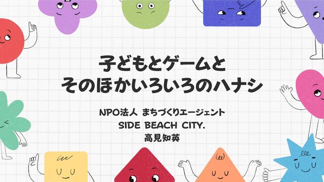 子どもとゲームと そのほかいろいろのハナシ NPO法人 まちづくりエージェント SIDE BEACH CITY. 高見知英