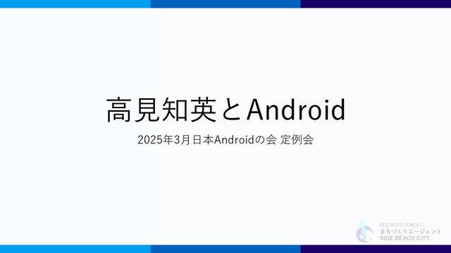特定非営利活動法人 まちづくりエージェント SIDE BEACH CITY. 高見知英とAndroid 2025年3月日本Androidの会 定例会