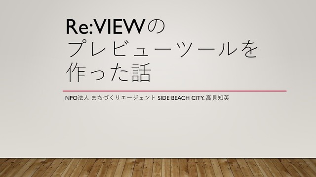Re:VIEWの プレビューツールを 作った話 NPO法人 まちづくりエージェント SIDE BEACH CITY. 高見知英