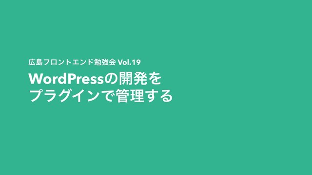 ౡϑϩϯτΤϯυษڧձ Vol.19 WordPressͷ։ൃΛ ϓϥάΠϯͰཧ͢Δ
