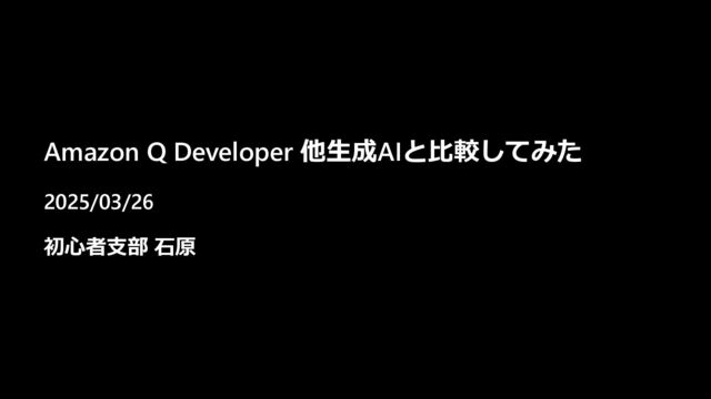 Amazon Q Developer 触るのはLT決まって 初めて 2025/3/26 初心者支部LT Amazon Q Developer 他生成AIと比較してみた 2