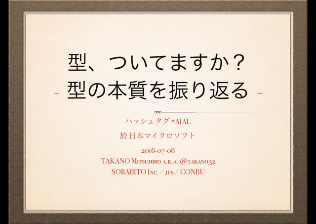 ܕɺ͍ͭͯ·͔͢ʁ - ܕͷຊ࣭ΛৼΓฦΔ - ϋογϡλά #AIAL ԙ ຊϚΠΫϩιϑτ 2016-07-08 TAKANO