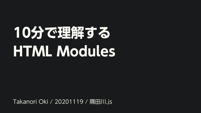 10分で理解する HTML Modules Takanori Oki / 20201119 / 隅田川.js