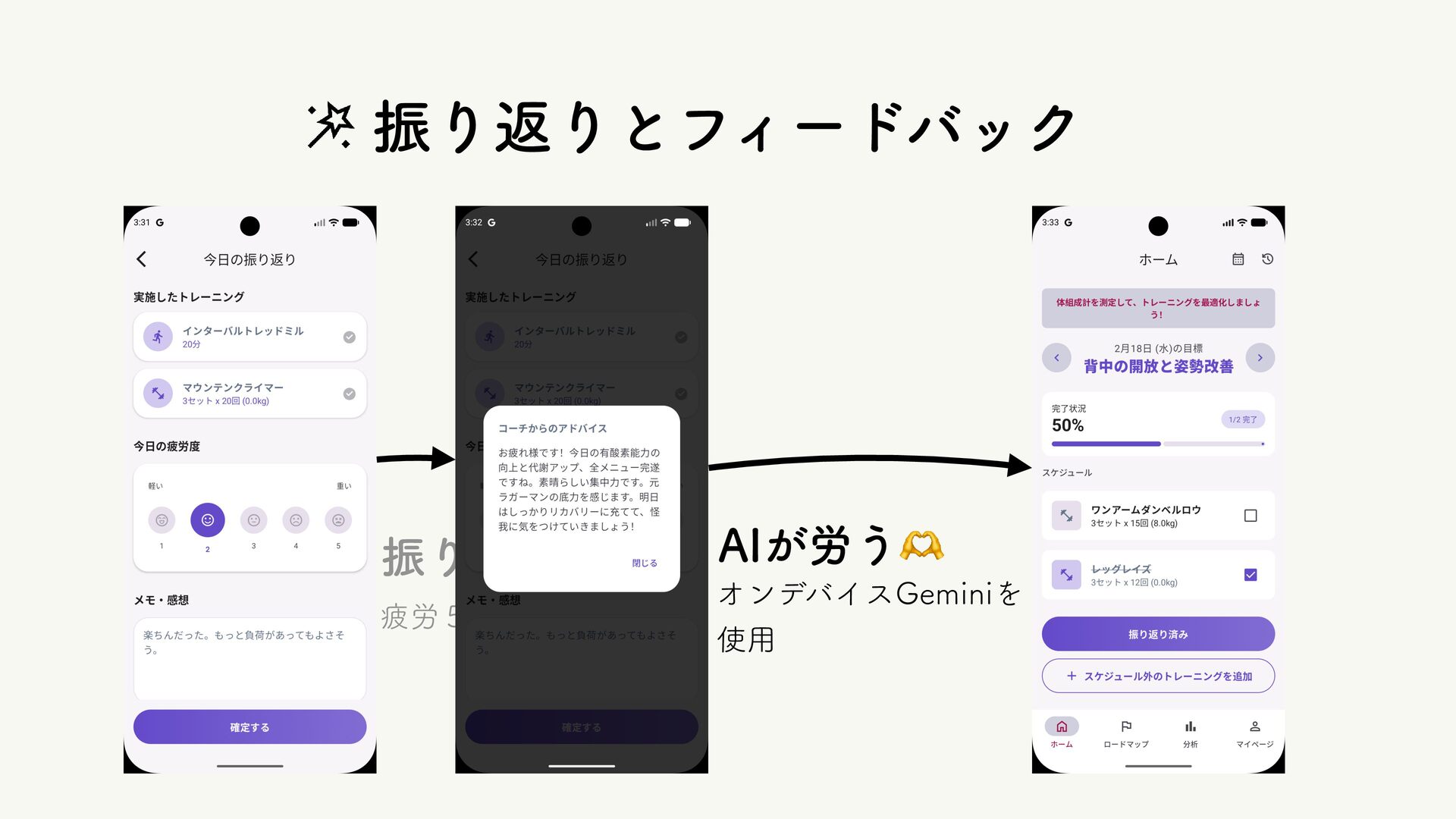 "*͕࿑͏🫶 ΦϯσόΠε(FNJOJΛ ༻ ৼΓฦΓೖྗ ർ࿑̑ஈ֊ධՁͰ͖Δ ৼΓฦΓͱϑΟʔυόοΫ ϑΟʔυόοΫ ർ࿑ײΛ ϓϩϯϓτʹೖΕΔ͜ͱͰ ࣍ճͷτϨʔχϯά߲