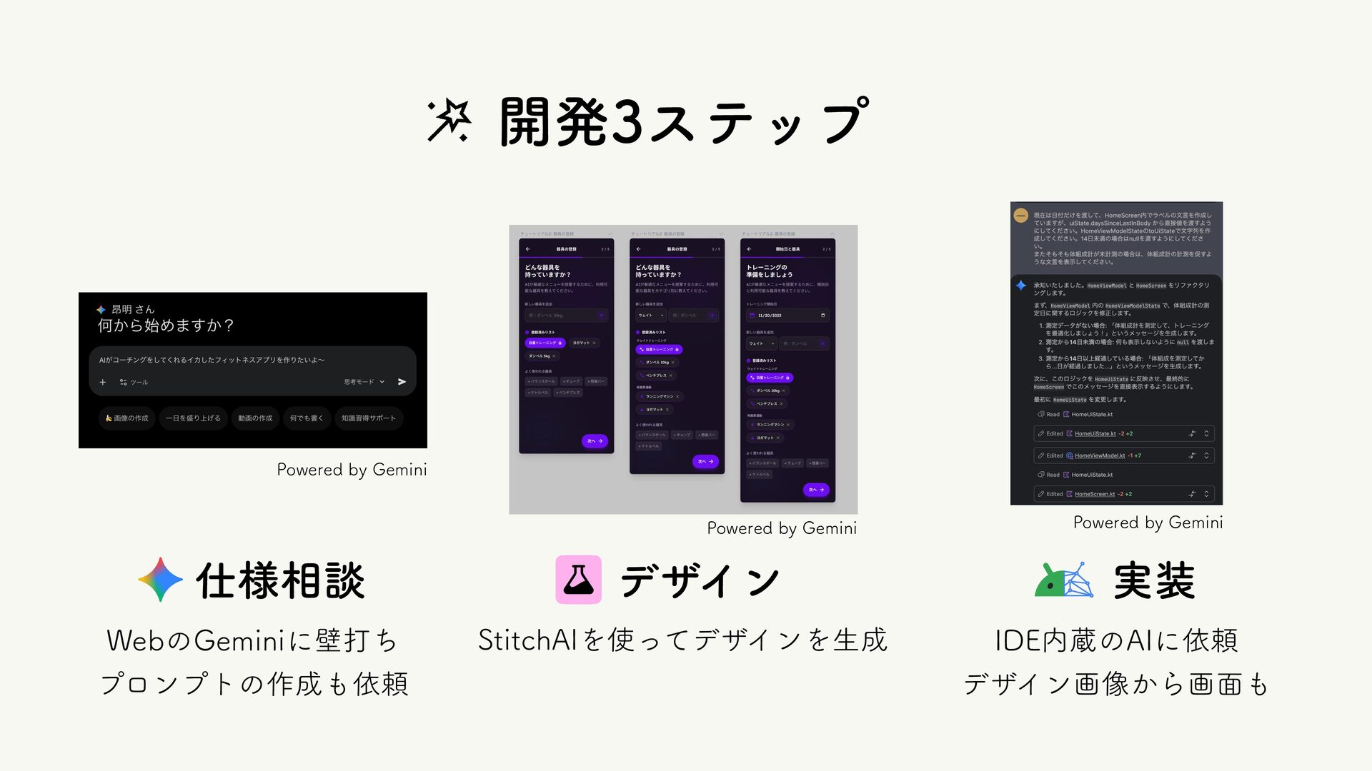 ։ൃεςοϓ σβΠϯ ࣮ ༷૬ஊ 8FCͷ(FNJOJʹนଧͪ ϓϩϯϓτͷ࡞ґཔ 4UJUDI"*ΛͬͯσβΠϯΛੜ *%&ଂͷ"*ʹґཔ σβΠϯը૾͔Βը໘ 1PXFSFECZ(FNJOJ
