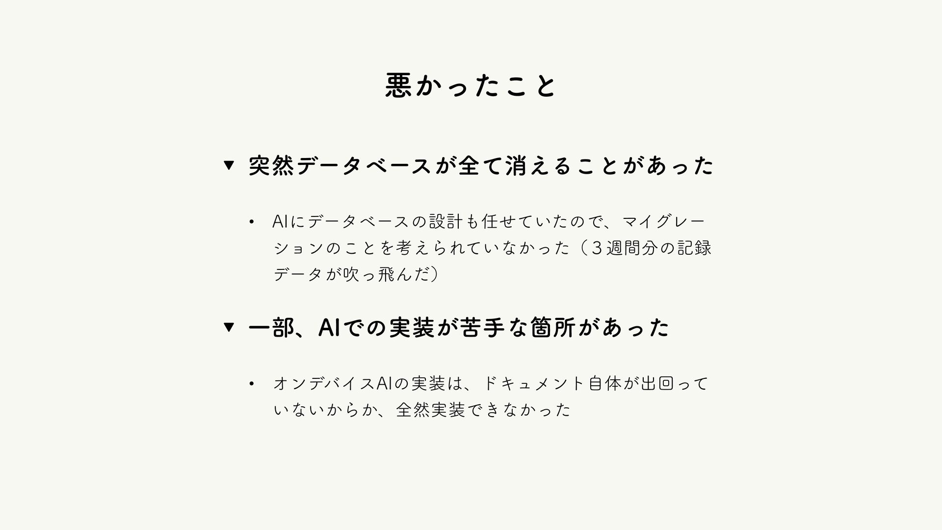 ѱ͔ͬͨ͜ͱ ˝ ಥવσʔλϕʔε͕શͯফ͑Δ͜ͱ͕͋ͬͨ w "*ʹσʔλϕʔεͷઃܭ͍ͤͯͨͷͰɺϚΠάϨʔ γϣϯͷ͜ͱΛߟ͑ΒΕ͍ͯͳ͔ͬͨʢ̏िؒͷه σʔλ͕ਧͬඈΜͩʣ ˝ Ұ෦ɺ"*Ͱͷ࣮͕ۤखͳՕॴ͕͋ͬͨ w