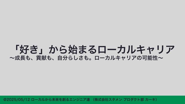 ϩʔΧϧʢ໊ݹʣͰͷΤϯδχΞ ͱͯ͠ͷΩϟϦΞ ϩʔΧϧͳΒͰͷ໘ന͞ 🎖ࠓ͍͑ͨ͜ͱ🎖