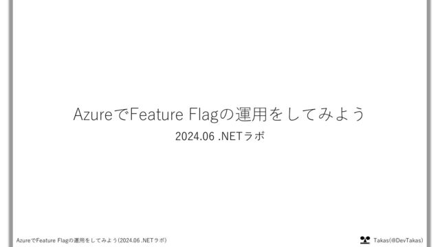 Takas(@DevTakas) AzureでFeature Flagの運用をしてみよう(2024.06 .NETラボ) AzureでFeature Flagの運用をしてみよう 2024.06 .NETラボ