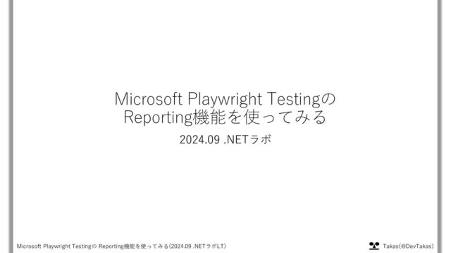 Takas(@DevTakas) Microsoft Playwright Testingの Reporting機能を使ってみる(2024.09 .NETラボLT) Microsoft Playwright Testingの Reporting機能を使ってみる