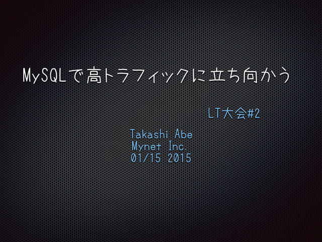 MySQLで高トラフィックに立ち向かう LT大会#2 Takashi Abe Mynet Inc. 01/15 2015