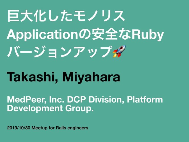 ڊେԽͨ͠ϞϊϦε Applicationͷ҆શͳRuby όʔδϣϯΞοϓ Takashi, Miyahara MedPeer, Inc. DCP Division, Platform