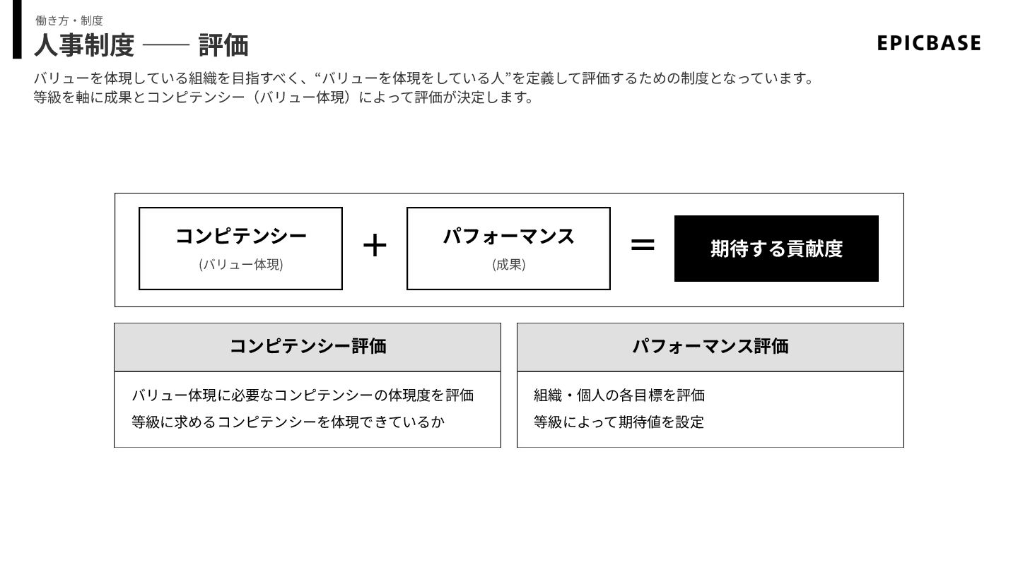 ⼈事制度 ―― 評価 働き⽅‧制度 + = コンピテンシー (バリュー体現) パフォーマンス (成果)