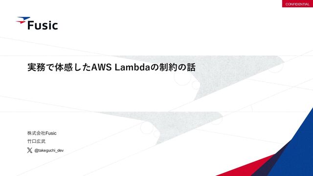 ©Fusic Co., Ltd. 0 CONFIDENTIAL CONFIDENTIAL 実務で体感したAWS Lambdaの制約の話 株式会社Fusic ⽵⼝広武