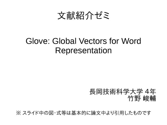 文献紹介ゼミ Glove: Global Vectors for Word Representation 長岡技術科学大学 4年 竹野