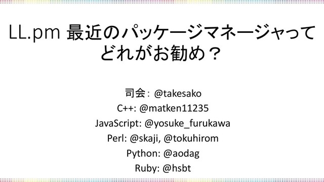 1. LL.pm = Learn Language’s Package Managers ◼言語のパッケージマネージャを学ぼう 最近出てきた yarn って何?