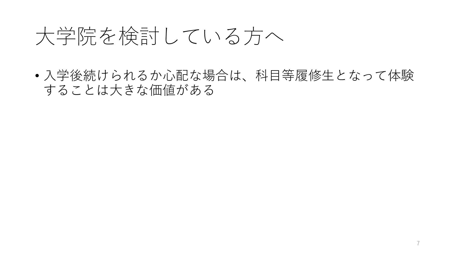 大学院を検討している方へ • 入学後続けられるか心配な場合は、科目等履修生となって体験 することは大きな価値がある 7