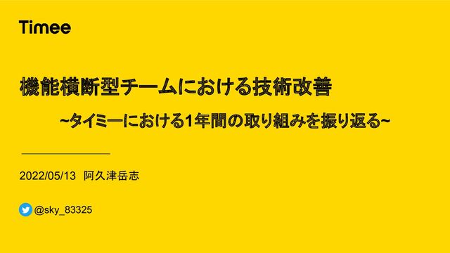 2022/05/13 阿久津岳志 機能横断型チームにおける技術改善 ~タイミーにおける1年間の取り組みを振り返る~ @sky_83325