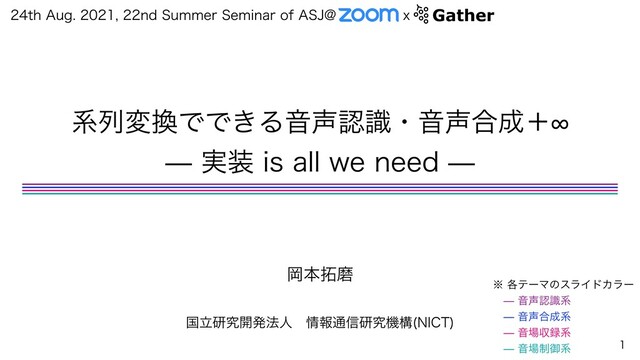 [ASJ_22nd_summer_seminar] 系列変換でできる音声認識・音声合成+∞ -実装 is all we need-